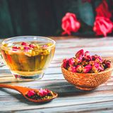 Combination of Japanese imported sencha green tea and natural dried flowers.